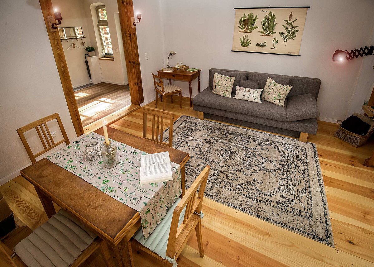 In Wokuhl erwartet Sie eine gemütliche, stilvoll eingerichtete Ferienwohnung in ruhiger, dörflicher Lage. Die Wohnung befindet sich in einem historischen Bauernhaus, das mit viel Liebe zum Detail und natürlichen Materialien restauriert wurde. Der Garten lädt zum Entspannen und Verweilen ein.